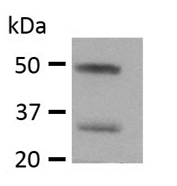 | Calculated MW | 28.5 kDa (unmodified); 35 - 50 kDa (glycosylated) |