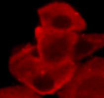 Immunofluorescence: 4% PFA fixed SK-BR-3 cells permeabilized with 0.2% Triton-X100 contained PBS and then stained with ARG41494 anti-B7-H4 antibody (red).