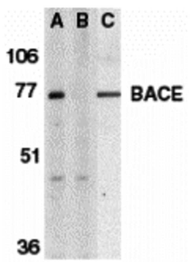 | Immunogen | Syntehtic peptide (17 aa) within the last 50 aa of Human BACE. |