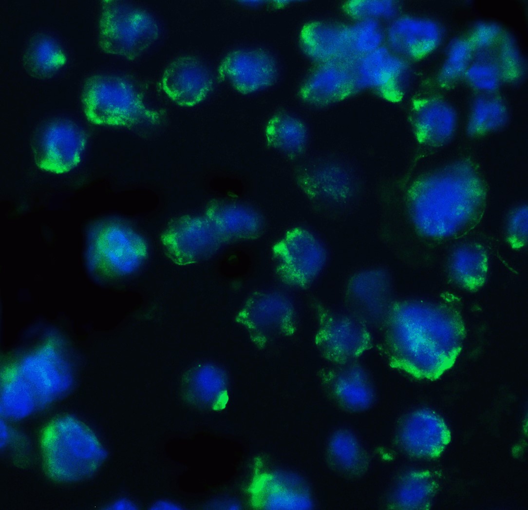 Immunocytochemistry: 3T3/NIH cells stained with ARG54921 anti-BACE1 antibody at 10 ug/ml dilution.