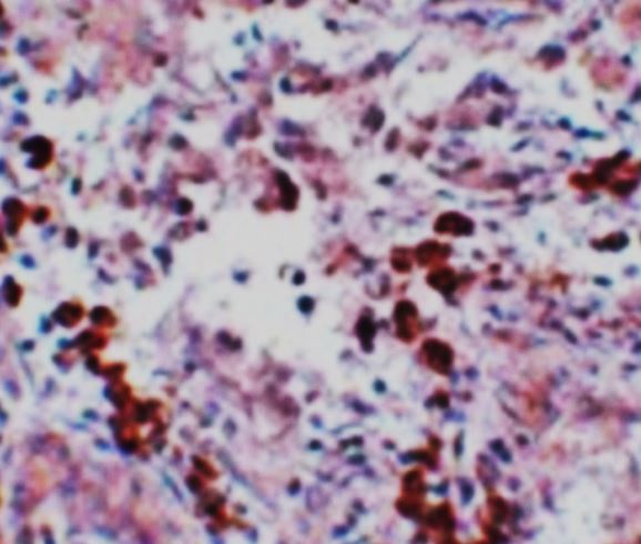 Immunohistochemistry: Human breast carcinoma stained with ARG46037 anti-BCAS1 / NABC1 antibody.