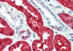 Immunohistochemistry: Paraffin-embedded Human kidney tissue. Antigen Retrieval: Steam tissue section in Citrate buffer (pH 6.0). The tissue section was stained with ARG64302 anti-BHMT antibody at 5 µg/ml dilution followed by AP-staining.