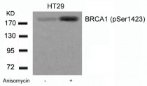 Western blot: Extracts from HT29 cells untreated or treated with Anisomycin stained with ARG51730 anti-BRCA1 phospho (Ser1423) antibody.