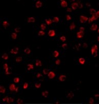Immunofluorescence: Daudi cells stained with ARG55747 anti-BTK antibody at 10 µg/ml dilution.