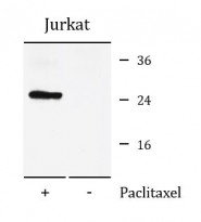 Western blot: Extracts from Jurkat cells, treated or untreated with Paclitaxel. The blots were stained with ARG54723 anti-Bcl 2 phospho (Ser70) antibody.