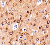 Immunohistochemistry: Rat brain stained with ARG46105 anti-C1QTNF4 antibody.