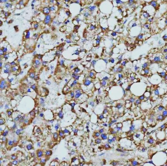 Immunohistochemistry: Human liver cancer stained with ARG45497 anti-C7orf30 antibody at 2 μg/ml dilution.