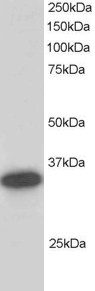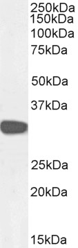 Western blot: 35 µg of Human kidney lysate (in RIPA buffer) stained with ARG63277 anti-CBR1 antibody at 0.1 µg/ml dilution and incubated at RT for 1 hour.