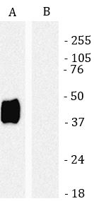 | Storage Instruction | For continuous use, store undiluted antibody at 2-8°C for up to a week. For long-term storage, aliquot and store at -20°C. Storage in frost free freezers is not recommended. Avoid repeated freeze/thaw cycles. Suggest spin the vial prior to opening. The antibody solution should be gently mixed before use. |