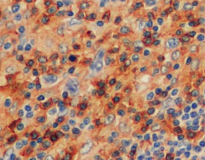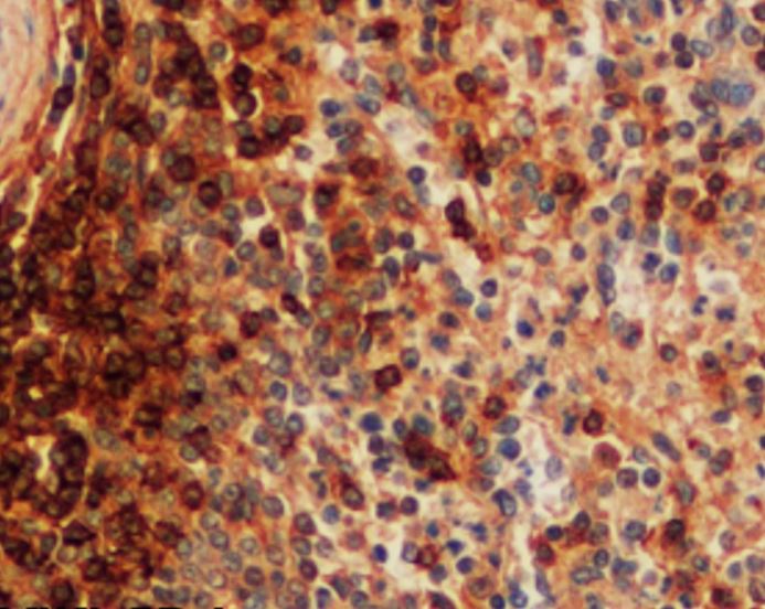 Immunohistochemistry: Human lymph node stained with ARG42499 anti-CD4 antibody at 1:750 dilution.