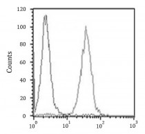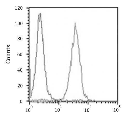 Flow Cytometry: SH-SY5Y cells stained with ARG55712 anti-CD56 / NCAM antibody (right histogram) at 1:25 dilution or isotype control antibody (left histogram), followed by incubation with Alexa Fluor® 488 labelled secondary antibody.