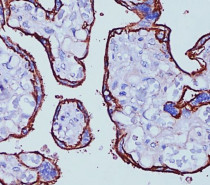 Immunohistochemistry: Paraffin-embedded Human placenta tissue stained with ARG41737 anti-CD73 antibody at 1:200 dilution.
