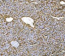 Immunohistochemistry: Paraffin-embedded Mouse liver tissue. Antigen Retrieval: Heat mediation was performed in EDTA buffer (pH 8.0). The tissue section was blocked with 10% goat serum. The tissue section was then stained with ARG40691 anti-CD81 antibody at 1 µg/ml dilution, overnight at 4°C.