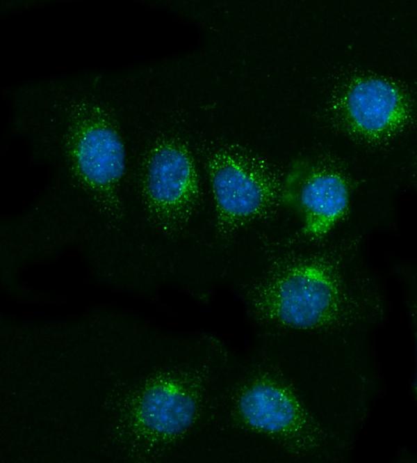 Immunofluorescence: RM-1 cells were blocked with 10% goat serum and then stained with ARG40691 anti-CD81 antibody (green) at 5 µg/ml dilution, overnight at 4°C. DAPI (blue) for nuclear staining.