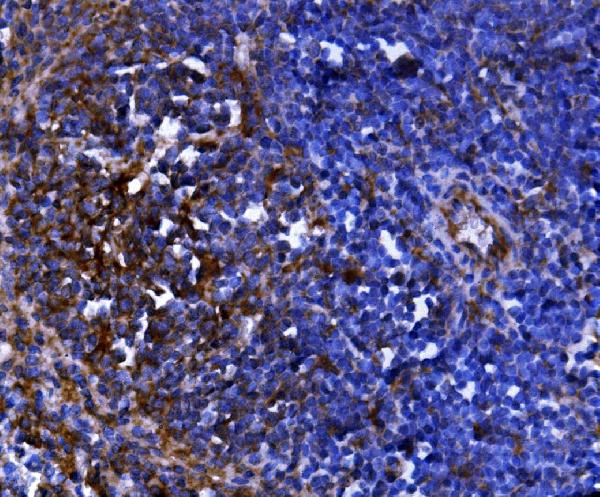 Immunohistochemistry: Paraffin-embedded Mouse spleen tissue. Antigen Retrieval: Heat mediation was performed in EDTA buffer (pH 8.0). The tissue section was blocked with 10% goat serum. The tissue section was then stained with ARG40691 anti-CD81 antibody at 1 µg/ml dilution, overnight at 4°C.
