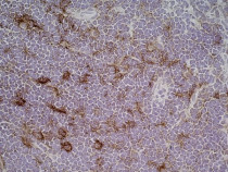 Immunohistochemistry: Rat lymph node cryosection stained with ARG23462 anti-CD86 antibody [24F] followed by HRP-conjugated Goat anti Mouse IgG. (Medium power).