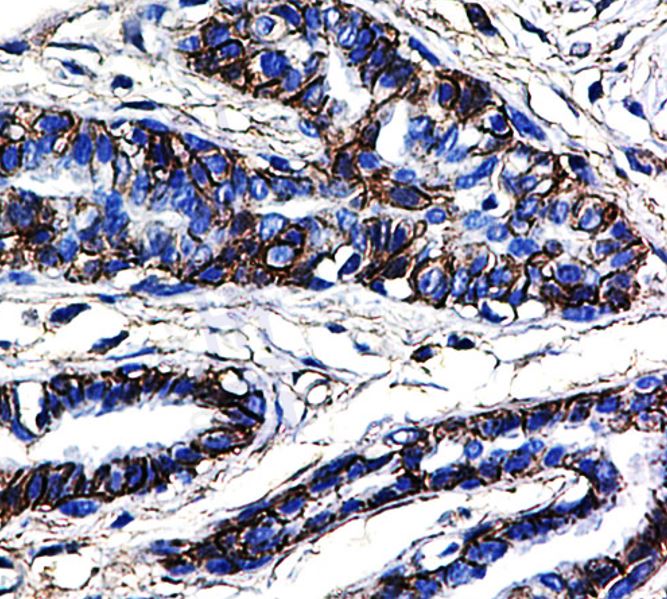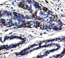 Immunohistochemistry: Human breast cancer stained with ARG40230 anti-CD99 antibody.