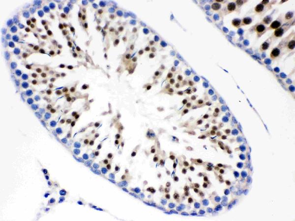 Immunohistochemistry: Paraffin-embedded Rat testis tissue stained with ARG41970 anti-CDC6 antibody.