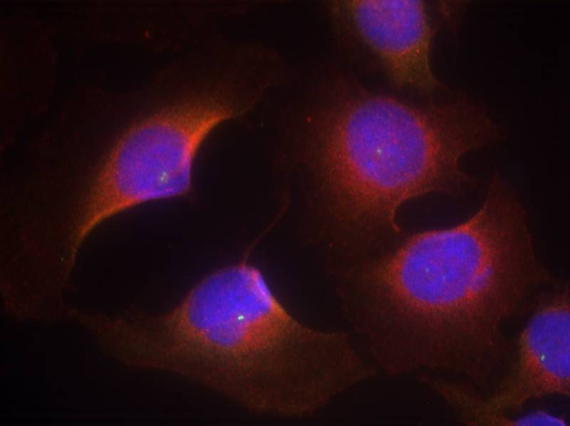 Immunofluorescence: methanol-fixed HeLa cells stained with ARG51829 anti-CDK6 phospho (Tyr13) antibody.