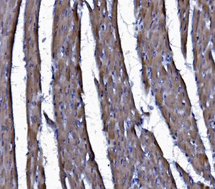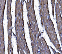 Immunohistochemistry: Rat cardiac muscle stained with ARG45670 anti-CHCHD10 antibody at 2 μg/ml dilution.