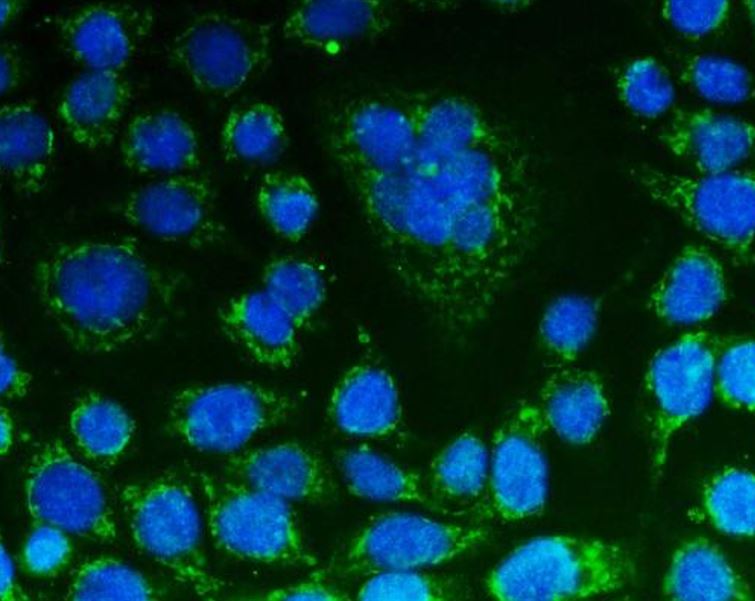Immunofluorescence: CACO-2 stained with ARG45670 anti-CHCHD10 antibody at 5 μg/ml dilution.