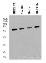Western blot: HEK293, SW480, HeLa and HCT116 cell lysates stained with ARG66884 anti-CHEK2 antibody, overnight at 4°C.