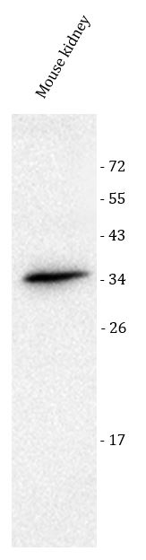 Western blot: Mouse kidney stained with ARG45179 anti-CLDN16 / Claudin 16 antibody at 0.5 μg/ml dilution.