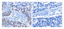 Immunohistochemistry: paraffin-embedded Human esophagus cancer tissue stained with ARG65736 anti-CNGA2 antibody (left) at 1:25 dilution, or the same antibody pre-incubated with antigen (right). (Original magnification: X200)
