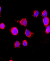 Immunofluorescence: HeLa stained with ARG44590 anti-CYP3A4 antibody at 1:100 dilution.