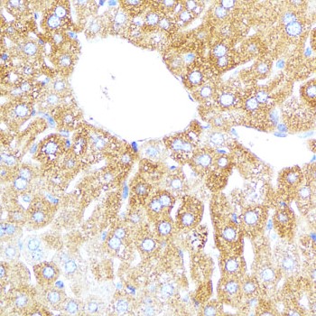 Immunohistochemistry: Mouse liver stained with ARG44590 anti-CYP3A4 antibody at 1:100 dilution.