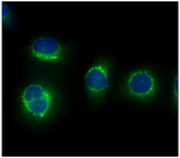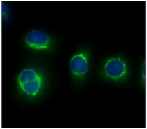 Immunofluorescence: HeLa cells line stained with ARG57147 anti-Calpain S1 antibody [1D11] at 1:100 (Green).