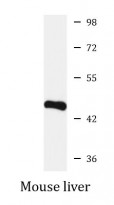 Western blot: 25 µg of Mouse liver lysate stained with ARG40813 anti-Cannabinoid Receptor 2 antibody at 1:3000 dilution.