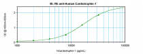 Sandwich ELISA: ARG66034 anti-Cardiotrophin 1 antibody (Biotin) as a detection antibody at 0.25 - 1.0 µg/ml combined with ARG66033 anti-Cardiotrophin 1 antibody as a capture antibody. Results of a typical standard run with optical density reading at 405 - 650 nm.
