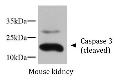 Western blot: Mouse kidney lysate stained with ARG66671 anti-Caspase 3 (cleaved) antibody at 1:1000 dilution, overnight at 4°C.