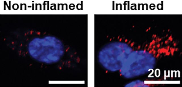 Immunofluorescence: Mouse endothelial cell stained with ARG57976 anti-Caveolin 1 antibody.