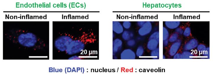 Immunofluorescence: Human ECs and hepatocytes stained with ARG57976 anti-Caveolin 1 antibody.