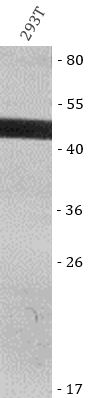Western blot: 293T stained with ARG67056 anti-ChemR23 / CMKLR1 antibody at 1:1000 dilution.