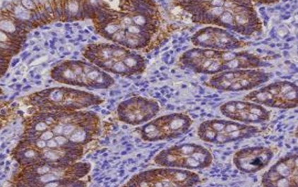 Immunohistochemistry: Humam Colon stained with ARG44643 anti-Claudin 3 antibody at 5 µg/mL dilution.