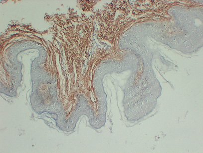 Immunohistochemistry: Paraffin-embedded Human skin stained with ARG66489 anti-Collagen III antibody at 1:200 (4°C, overnight). Antigen Retrieval: Citric acid buffer (pH 6.0) was used.
