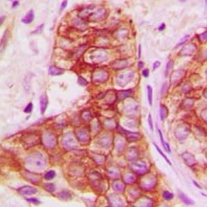 Immunohistochemistry: Formalin-fixed and paraffin-embedded Human breast cancer tissue. Antigen Retrieval: Heat mediation was performed in Sodium citrate buffer (pH 6.0). The section was then stained with ARG66599 anti-Connexin 43 antibody at room temperature and detected using an HRP conjugated compact polymer system. DAB was used as the chromogen. The section was then counterstained with haematoxylin and mounted with DPX.