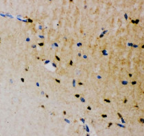 Immunohistochemistry: Mouse brain stained with ARG45598 anti-Crk p38 antibody at 2 μg/ml dilution.