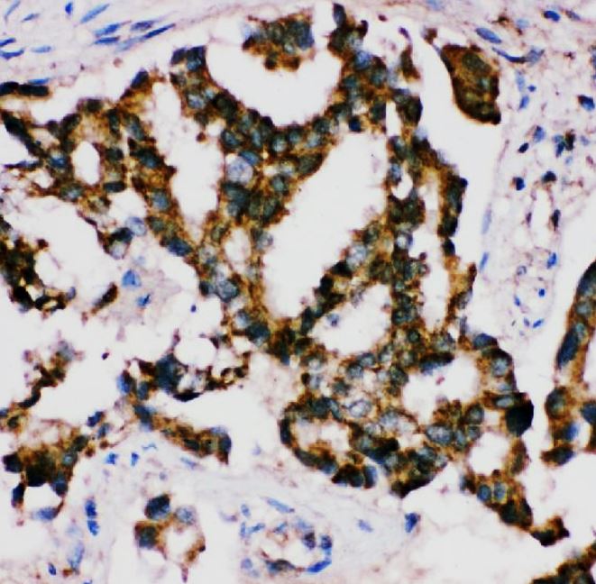 Immunohistochemistry: Human lung cancer stained with ARG45598 anti-Crk p38 antibody at 2 μg/ml dilution.