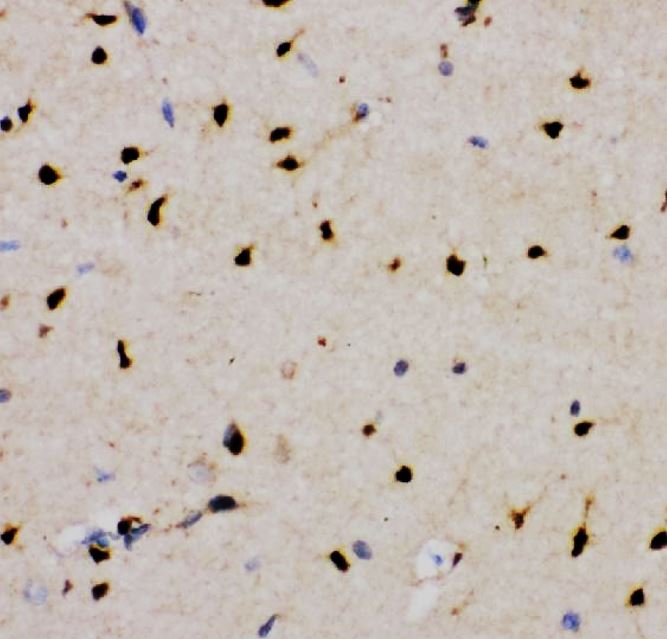Immunohistochemistry: Rat brain stained with ARG45598 anti-Crk p38 antibody at 2 μg/ml dilution.