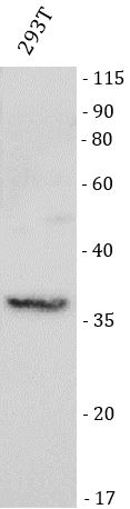 Western blot: 293T stained with ARG45598 anti-Crk p38 antibody at 0.5 μg/ml dilution.