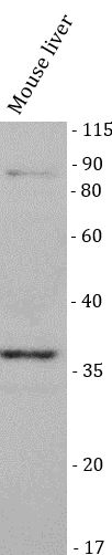Western blot: Mouse liver stained with ARG45598 anti-Crk p38 antibody at 0.5 μg/ml dilution.