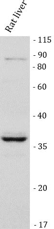 Western blot: Rat liver stained with ARG45598 anti-Crk p38 antibody at 0.5 μg/ml dilution.