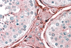 Immunohistochemistry: paraffin embedded Human Testis. (Steamed antigen retrieval with citrate buffer pH 6) stained with ARG63717 anti-Cytochrome b reductase 1 antibody at 2.5 µg/ml dilution followed by AP-staining.