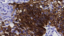 Immunohistochemistry: Human esophageal squamous cell carcinoma stained with ARG44694 anti-Cytokeratin 15 antibody at 5 µg/mL dilution.
