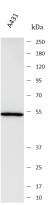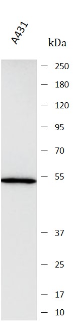 Western blot: A431 stained with ARG44694 anti-Cytokeratin 15 antibody at 1 µg/mL dilution.