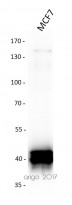 Western blot: 30 µg of MCF7 cell lysate stained with ARG62979 anti-Cytokeratin 19 antibody [A53-B/A2] at 1:500 dilution.